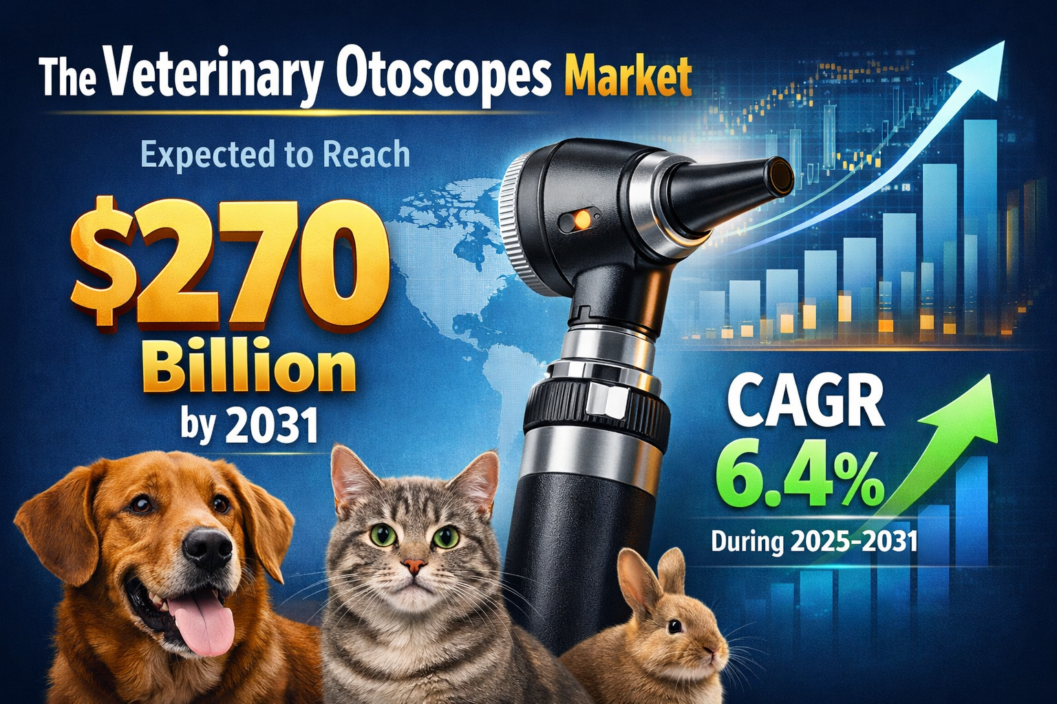 The veterinary otoscopes market is witnessing steady growth driven by the increasing focus on animal healthcare, rising pet ownership, and advancements in diagnostic technologies. Veterinary otoscopes are essential tools used by veterinarians to examine the ear canal of animals, enabling the diagnosis of infections, inflammation, foreign bodies, and other ear-related conditions. As awareness regarding animal health continues to expand globally, the demand for precise and efficient diagnostic tools is also on the rise. The Veterinary Otoscopes Market size is expected to reach US$ 270 Billion by 2031. The market is anticipated to register a CAGR of 6.4% during 2025–2031.