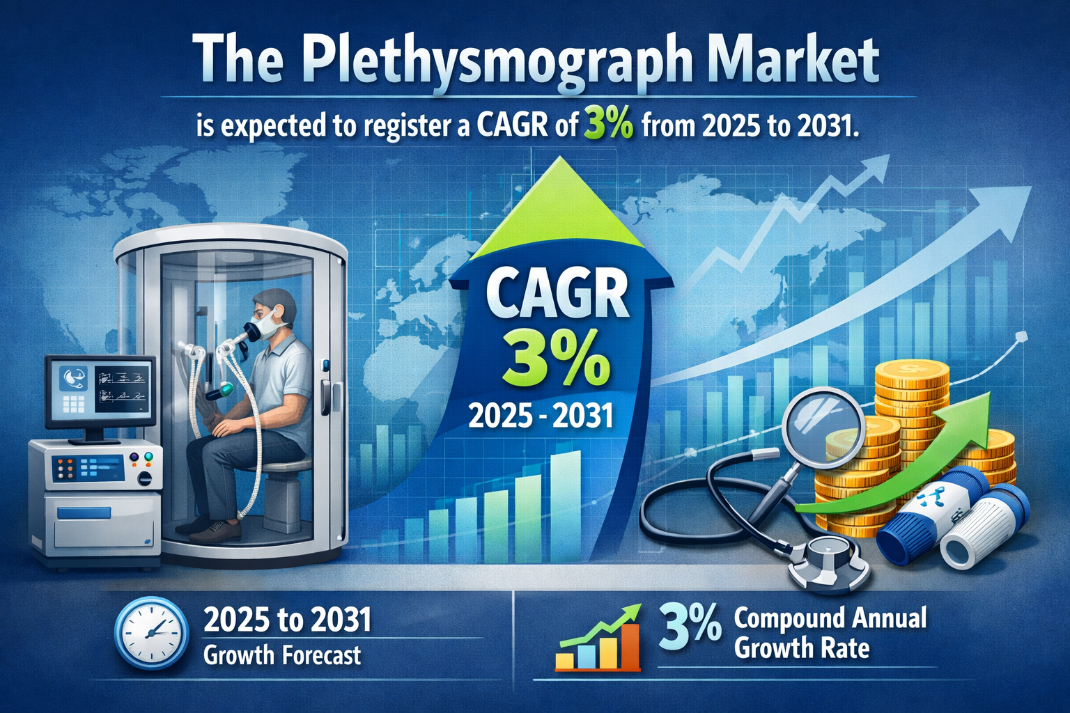 The plethysmograph market is steadily gaining attention within the global healthcare landscape due to its critical role in measuring changes in volume within organs or the entire body. Plethysmographs are widely used in diagnosing respiratory conditions, cardiovascular diseases, and peripheral vascular disorders. As healthcare systems worldwide emphasize early diagnosis and preventive care, the demand for advanced diagnostic tools like plethysmographs continues to grow. The Plethysmograph Market is expected to register a CAGR of 3% from 2025 to 2031, reflecting stable expansion supported by technological advancements and increasing healthcare awareness.