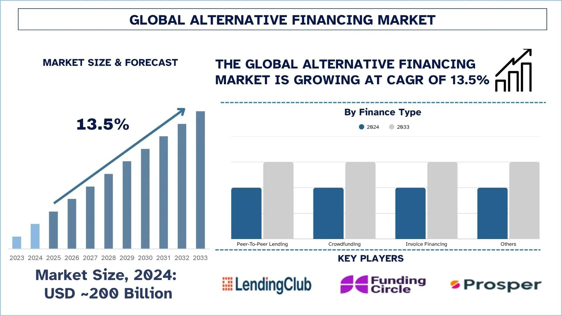 According to a new report by UnivDatos, the Alternative Financing Market is expected to reach USD billion in 2033 by growing at a CAGR of 13.5%. The alternative financing market continues to show strong investment potential, driven by increased digital transformation and unmet credit needs. Institutional investors are increasingly viewing digital lending platforms as scalable, high-yield assets, diversifying their portfolios beyond traditional banking assets. Regulatory clarity in major economies, such as the U.S., the UK, and Singapore, is also promoting cross-border investment into compliant, tech-driven lending ecosystems. Furthermore, partnerships among private equity firms and fintech providers are driving innovation in credit modeling, liquidity management, and SME-focused financing solutions. This influx of capital and the collaborative ecosystem are expected to drive double-digit growth in the alternative financing sector over the next decade.